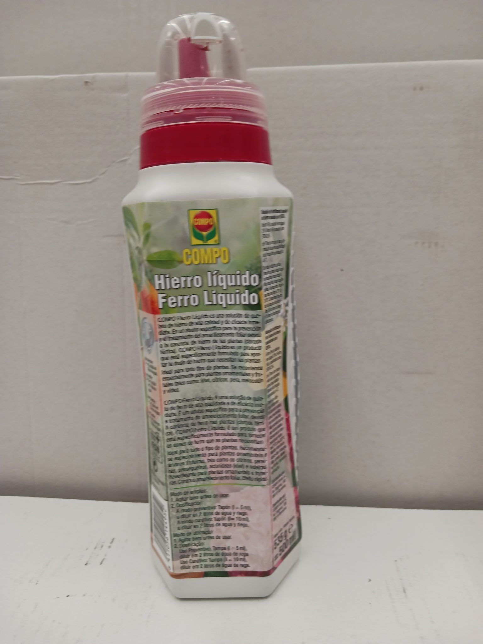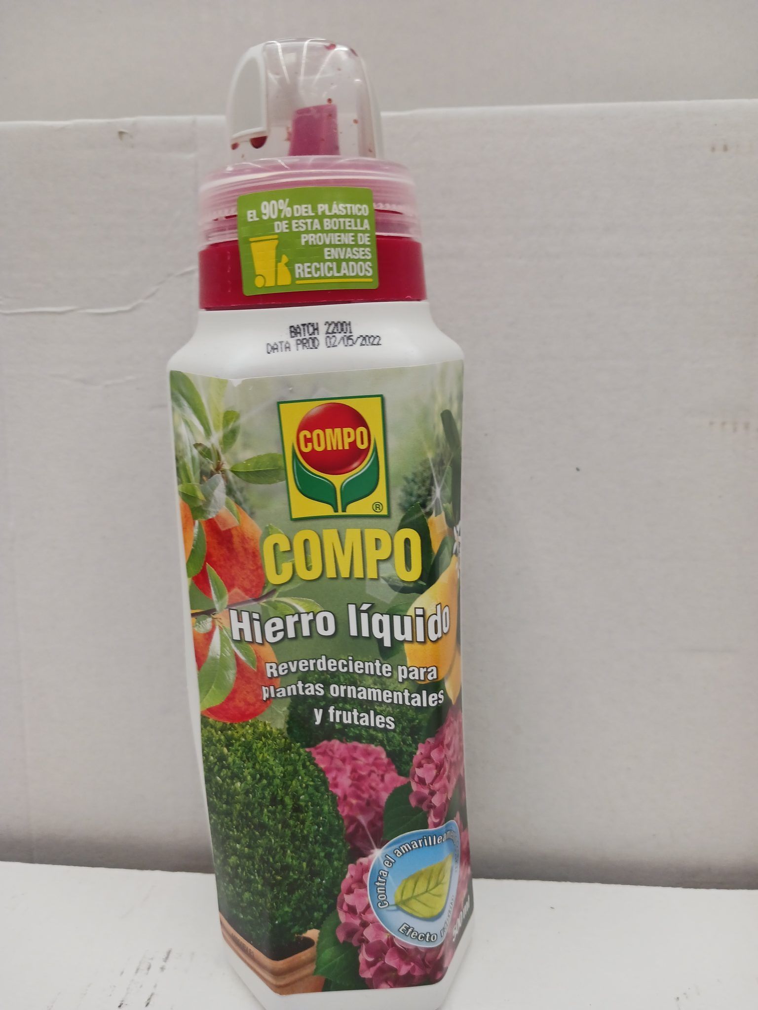 Hierro líquido para aplicar con pulverización en las hojas de árboles frutales, cítricos y plantas ornamentales que manifiestan clorosis férrica con amarilleamiento de hojas. Este fertilizante reverdece las hojas de frutales y plantas ornamentales consiguiendo que la planta realice una fotosintesis adecuada para su desarrollo. Efecto rápido contra el amarilleamiento foliar.